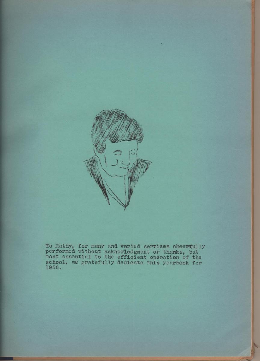 Highlights: The book is dedicated to Mathy Lauer – a cousin to Gertrud, who, like her, was one of the first women doctors in Germany (learn more about her in AnneMarie Bondy Roeper’s book “Marienau). Maurice Eldridge was Student Council President, find his words of wisdom on page 45. There are many photo pages, oddly there are many pages dedicated to sports from tennis to field hockey, a few daily scene pages, and as usual, Franny Hall did several theater productions – keep in mind the Theater has not yet been built, nor has West or East Dorms.