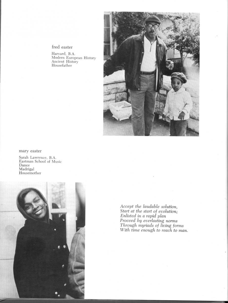 A traditional style yearbook, approximately 120 pages, 8.5 x 11 on matte coated 80 lb white, with hardbound (sewn signature) Purple linen cloth cover that is Hot stamped on front only with Silver foil. Find credits given to the Yearbook committee on page 118. No message from Gertrude … she has not contributed to any Yearbook since 1960 for reasons unknown. Heinz takes over providing the annual message on page 4 titled “The Future of Windsor” signed in all lower case “heinz e. bondy.” Heinz worries … “Windsor, with the help from its students, must find a solution to the unhappiness, dissatisfaction, and alienation from the “real” world which [is] more pronounced and wide-spread than ever before.” Very little other text … mostly student and other poems. In this year there were numerous photographers, but photos are not identified. Faculty is featured first, Seniors come next (because this is Roger Barth book, there many salutations), activities and sports get sprinkled between sections, Dorm Photos (no captions), Student Council/Court, Yearbook Committee and sponsors.