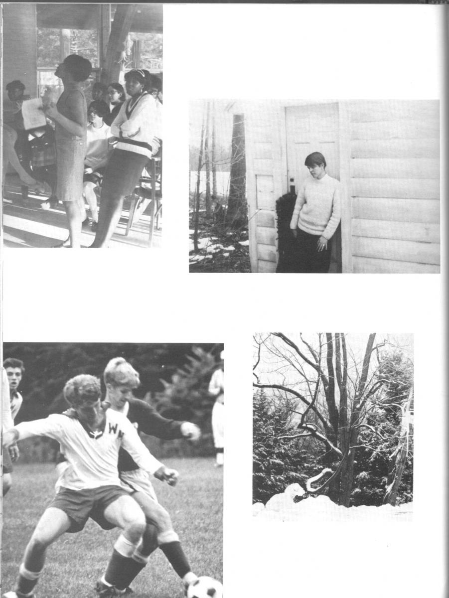 A traditional style yearbook, approximately 120 pages, 8.5 x 11 on matte coated 80 lb white, with hardbound (sewn signature) Purple linen cloth cover that is Hot stamped on front only with Silver foil. Find credits given to the Yearbook committee on page 118. No message from Gertrude … she has not contributed to any Yearbook since 1960 for reasons unknown. Heinz takes over providing the annual message on page 4 titled “The Future of Windsor” signed in all lower case “heinz e. bondy.” Heinz worries … “Windsor, with the help from its students, must find a solution to the unhappiness, dissatisfaction, and alienation from the “real” world which [is] more pronounced and wide-spread than ever before.” Very little other text … mostly student and other poems. In this year there were numerous photographers, but photos are not identified. Faculty is featured first, Seniors come next (because this is Roger Barth book, there many salutations), activities and sports get sprinkled between sections, Dorm Photos (no captions), Student Council/Court, Yearbook Committee and sponsors.