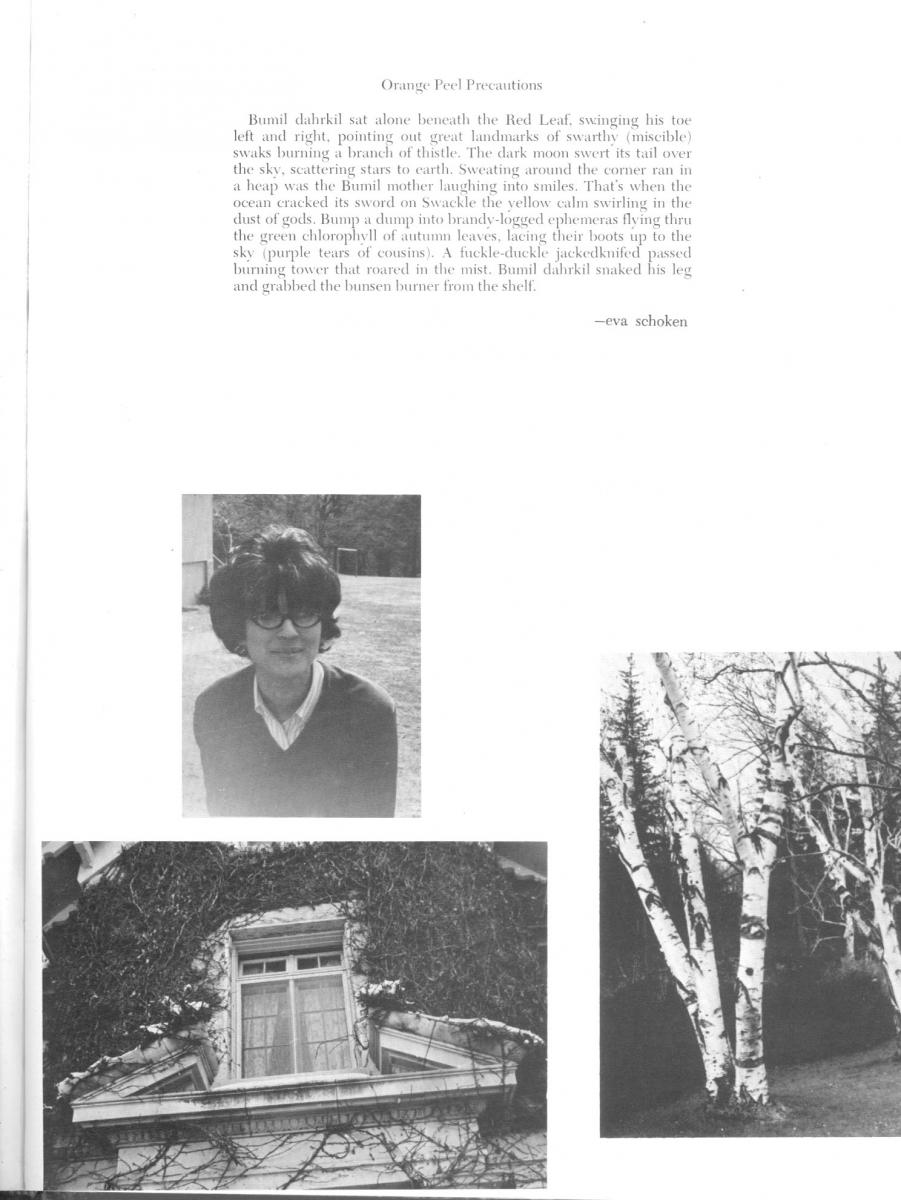 A traditional style yearbook, approximately 120 pages, 8.5 x 11 on matte coated 80 lb white, with hardbound (sewn signature) Purple linen cloth cover that is Hot stamped on front only with Silver foil. Find credits given to the Yearbook committee on page 118. No message from Gertrude … she has not contributed to any Yearbook since 1960 for reasons unknown. Heinz takes over providing the annual message on page 4 titled “The Future of Windsor” signed in all lower case “heinz e. bondy.” Heinz worries … “Windsor, with the help from its students, must find a solution to the unhappiness, dissatisfaction, and alienation from the “real” world which [is] more pronounced and wide-spread than ever before.” Very little other text … mostly student and other poems. In this year there were numerous photographers, but photos are not identified. Faculty is featured first, Seniors come next (because this is Roger Barth book, there many salutations), activities and sports get sprinkled between sections, Dorm Photos (no captions), Student Council/Court, Yearbook Committee and sponsors.