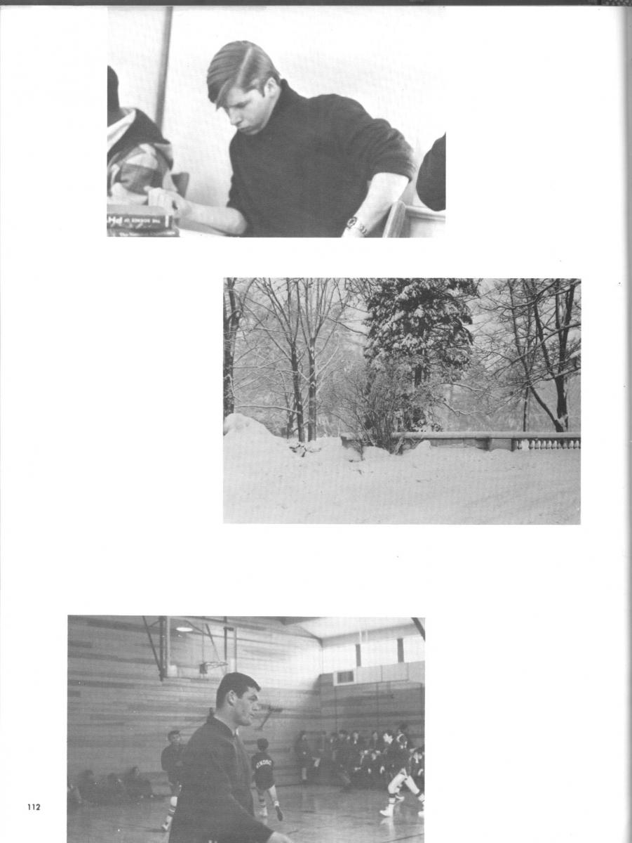 A traditional style yearbook, approximately 120 pages, 8.5 x 11 on matte coated 80 lb white, with hardbound (sewn signature) Purple linen cloth cover that is Hot stamped on front only with Silver foil. Find credits given to the Yearbook committee on page 118. No message from Gertrude … she has not contributed to any Yearbook since 1960 for reasons unknown. Heinz takes over providing the annual message on page 4 titled “The Future of Windsor” signed in all lower case “heinz e. bondy.” Heinz worries … “Windsor, with the help from its students, must find a solution to the unhappiness, dissatisfaction, and alienation from the “real” world which [is] more pronounced and wide-spread than ever before.” Very little other text … mostly student and other poems. In this year there were numerous photographers, but photos are not identified. Faculty is featured first, Seniors come next (because this is Roger Barth book, there many salutations), activities and sports get sprinkled between sections, Dorm Photos (no captions), Student Council/Court, Yearbook Committee and sponsors.