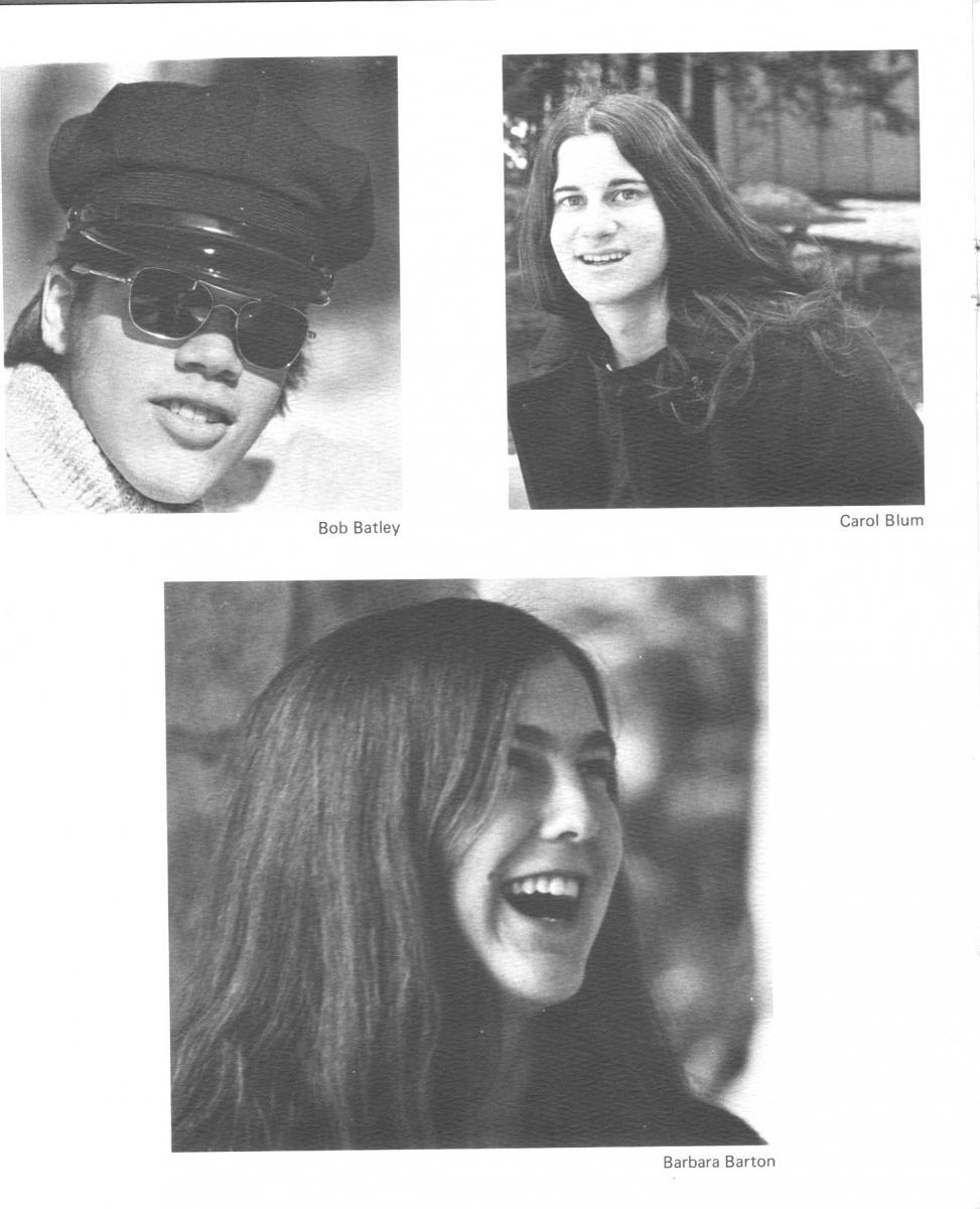 Thanks to Peter Goldman, a full version of this Yearbook is now available. The 1971 Yearbook followed the same format pioneered in 1969 in that it wasn’t a “book,” but rather a set of booklets. The booklets measured 9 x 10.5″ and were saddled stitched (center stapled), each had a pastel colored textured 80 lb cover with only “1971” printed in the middle. Each of the three booklets was themed for “Seniors” Blue (PDF), “Faculty” Yellow (PDF), and “Scenes” Purple (PDF). The booklet pages were printed black ink on 100 lb text white textured finish paper, with a parchment-like fly sheet between cover and pages.